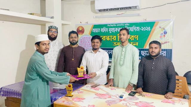 বাঁশখালী সংলাপ:: বাংলাদেশ ইসলামী ছাত্রশিবির চট্টগ্রাম জেলা পশ্চিম শাখার দাওয়াহ বিভাগের উদ্যোগে সাথীদের মাঝে আয়োজিত ‘আয়াত-হাদীস মুখস্তকরণ প্রতিযোগিতা-২৫’ সফলভাবে সম্পন্ন হয়েছে। গত রবিবার আয়োজিত প্রতিযোগিতার সমাপনী পর্ব ও পুরস্কার বিতরণী অনুষ্ঠান অনুষ্ঠিত হয়।