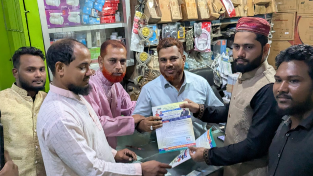 লিফলেট বিতরণ শেষে স্থানীয় জনগণের সঙ্গে শুভেচ্ছা বিনিময় করেন তিনি।