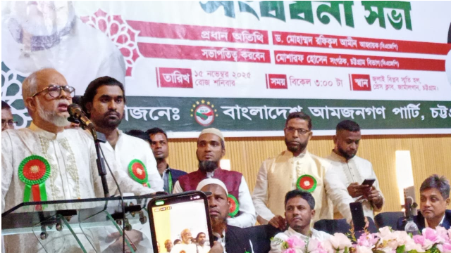 শনিবার বিকেলে চট্টগ্রাম প্রেস ক্লাবের জুলাই বিপ্লব স্মৃতি হলে বাংলাদেশ আমজনগণ পার্টি, চট্টগ্রাম বিভাগের উদ্যোগে আয়োজিত সংবর্ধনা অনুষ্ঠানে প্রধান অতিথির বক্তব্যে তিনি এসব কথা বলেন।