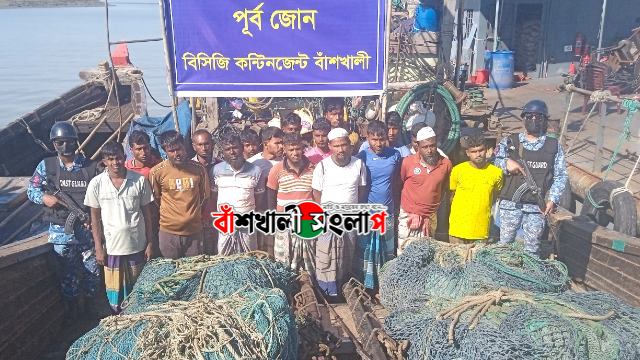 বাঁশখালী সংলাপ:: চট্টগ্রামের বাঁশখালী উপকূলে অভিযান চালিয়ে একটি অবৈধ আর্টিসানাল ট্রলিং বোট ও ট্রলিং জালসহ ১৮ জন জেলেকে আটক করেছে বাংলাদেশ কোস্ট গার্ড।