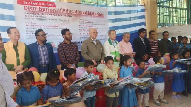 বাঁশখালী সংলাপ::: জাপানভিত্তিক মানবিক সংগঠন রিসসো কোসেই-কাই বাংলাদেশ-এর উদ্যোগে চট্টগ্রামের বাঁশখালী উপজেলার পূর্ব কাহারঘোনা সরকারি প্রাথমিক বিদ্যালয়ের দুই শতাধিক শিক্ষার্থীর মাঝে শিক্ষা সামগ্রী বিতরণ করা হয়েছে। শনিবার সকালে বিদ্যালয়ের প্রধান শিক্ষক তিলক কান্তি দত্তের সভাপতিত্বে আয়োজিত অনুষ্ঠানে প্রধান অতিথি ছিলেন বাঁশখালী উপজেলা সহকারী কমিশনার (ভূমি) মো. ওমর সানী আকন।