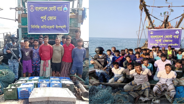 কোস্ট গার্ড জানায়, জব্দকৃত ট্রলিং বোট, জাল, সামুদ্রিক মাছ এবং আটককৃত জেলেদের বিরুদ্ধে পরবর্তী আইনানুগ ব্যবস্থা গ্রহণের প্রক্রিয়া চলমান রয়েছে।