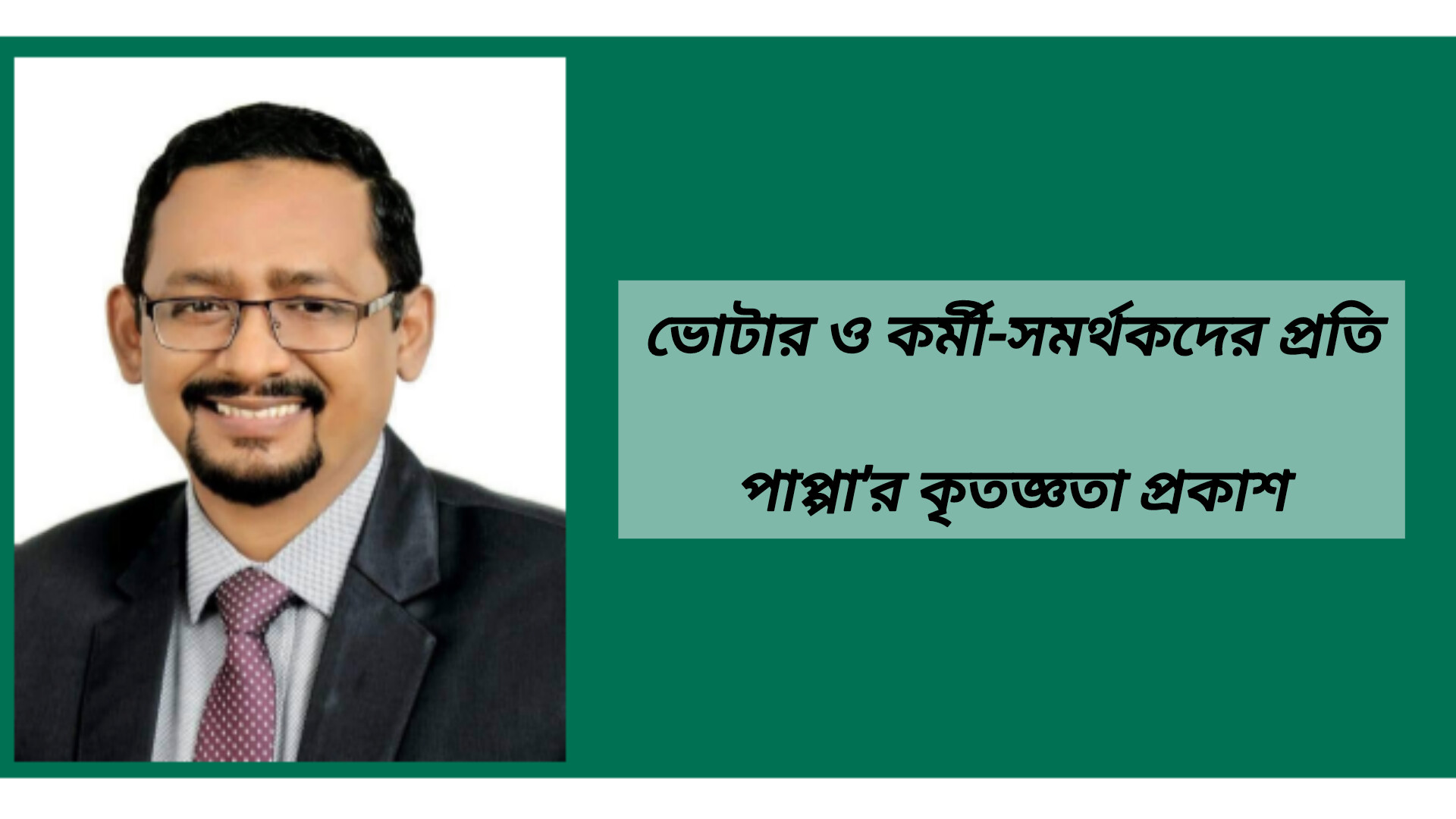 ফেসবুক বার্তায় পাপ্পা বলেন, নির্বাচনে দিনরাত অক্লান্ত পরিশ্রম করে ধানের শীষের পক্ষে কাজ করা প্রত্যেক নেতা-কর্মীর প্রতি তিনি আন্তরিকভাবে কৃতজ্ঞ। তাদের ভালোবাসা, ত্যাগ ও আন্তরিকতা তাকে গভীরভাবে অনুপ্রাণিত করেছে বলেও উল্লেখ করেন তিনি।