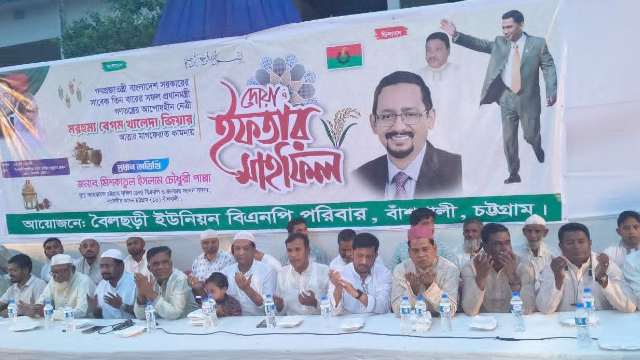 বাঁশখালী সংলাপ::: চট্টগ্রামের বাঁশখালী উপজেলার বৈলছড়ী ইউনিয়ন বিএনপির উদ্যোগে ইফতার ও দোয়া মাহফিল অনুষ্ঠিত হয়েছে। বৃহস্পতিবার বিকেলে বাঁশখালী হামিদিয়া রহিমা আলীয়া মাদরাসার মাঠে এ আয়োজন করা হয়।